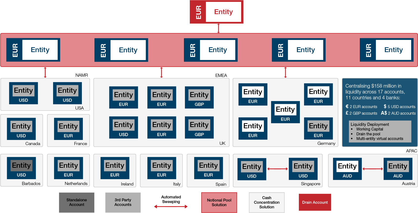 Gain visibility of their global liquidity position with minimal disruption to existing cash management.