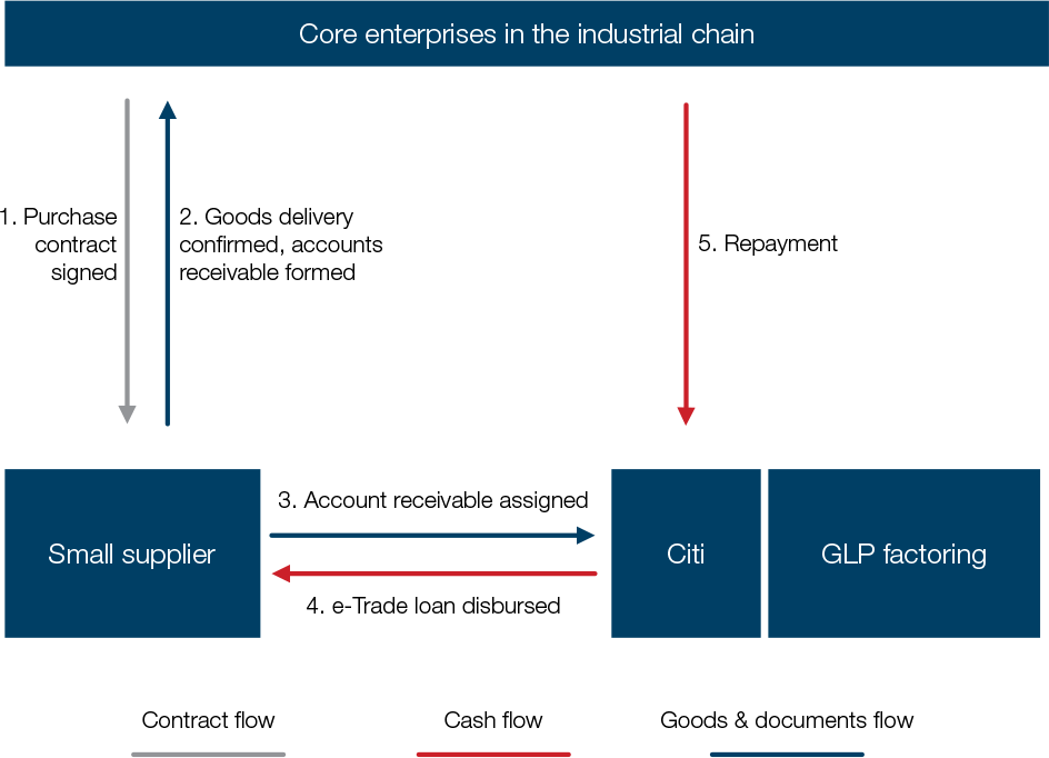 Citi partnered with GLP and its captive financing arm and supply chain company to develop a fully digitalised solution that empowers its external suppliers. The solution streamlines access to timely non-bank financial institutions [NBFI] e-trade loan via supply chain and factoring company channels, eliminating the need for supply chain demand, payment delays, financing gap, turnaround pressures and regular control. In addition, core buyer entities and their suppliers don’t need to open additional bank accounts.